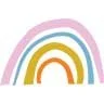 Colorful rainbow with five arcs in pink, blue, yellow, orange, and black against a transparent background.